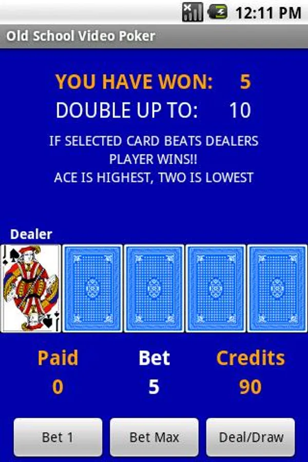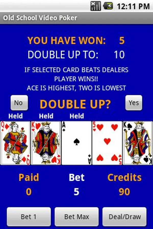 Old School Video Poker is true simulation of the Las Vegas video poker games that first came to popularity in the 1980's and 90's. Everything including game play and sounds will make you think you are playing a traditional video poker machine in Las Vegas!