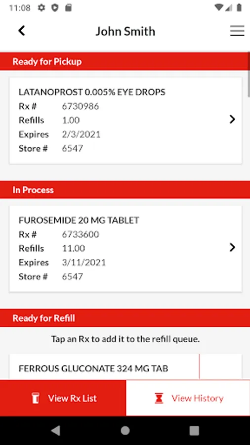 - Refill your prescriptions entering the Rx number or scanning the bottle