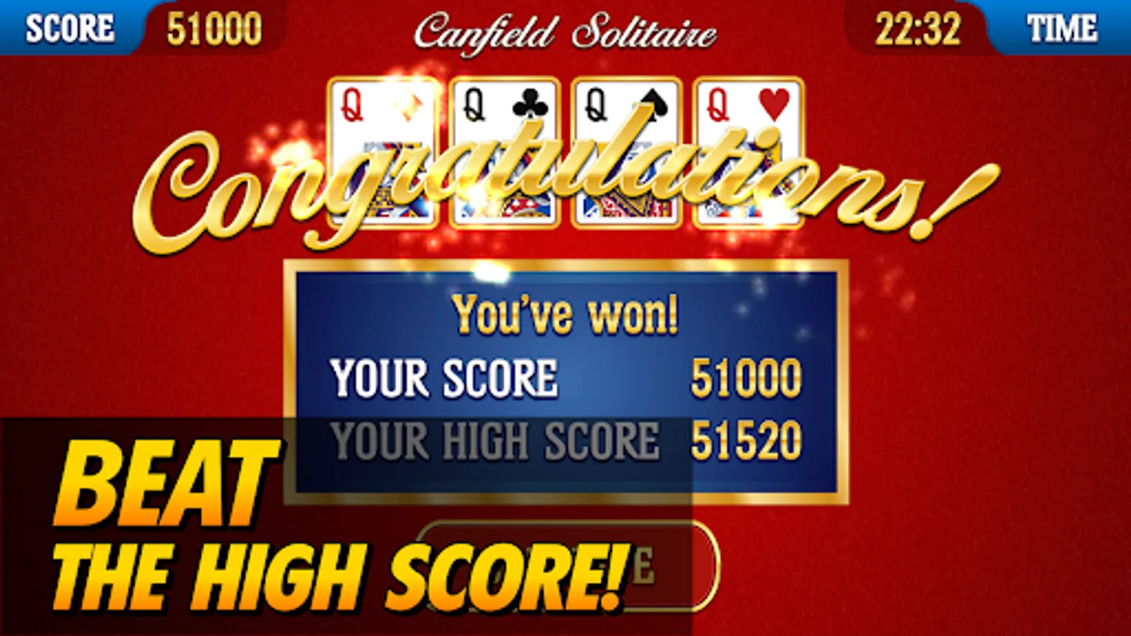 Canfield Solitaire is the ultimate classic card game that combines strategy, skill, and a little bit of luck. With intuitive gameplay, a user-friendly interface, and in-game statistics, it's easy to play and track your progress. Play solo or challenge your friends on the leaderboard and see who comes out on top. Download Canfield Solitaire now for free on Google Play and start enjoying hours of entertainment and brain-building fun today.