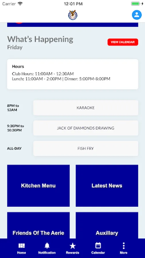 Our app contains all the latest information on what is happening at our Aerie. View our entire Kitchen Menu and upcoming specials. Additionally, be notified when new events are coming up! You can also earn rewards every time you visit the club!