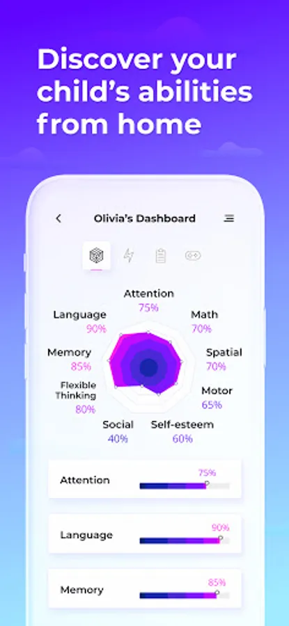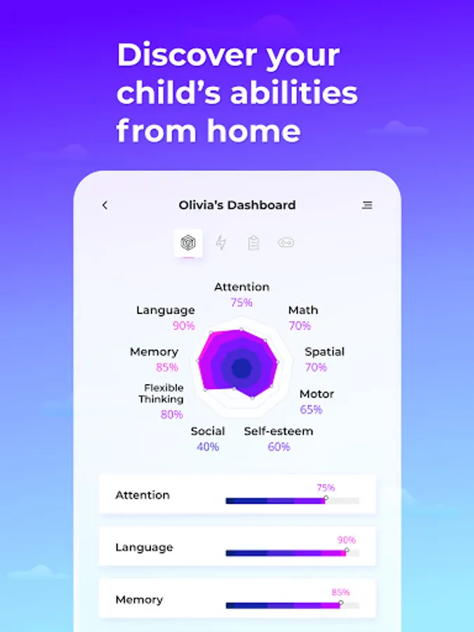 Our science-backed gamified evaluation is both fun and educational for your children. While they play, you gain insights about their development progress, discover their aptitudes, and spot challenges early. No more guessing and self-doubting.