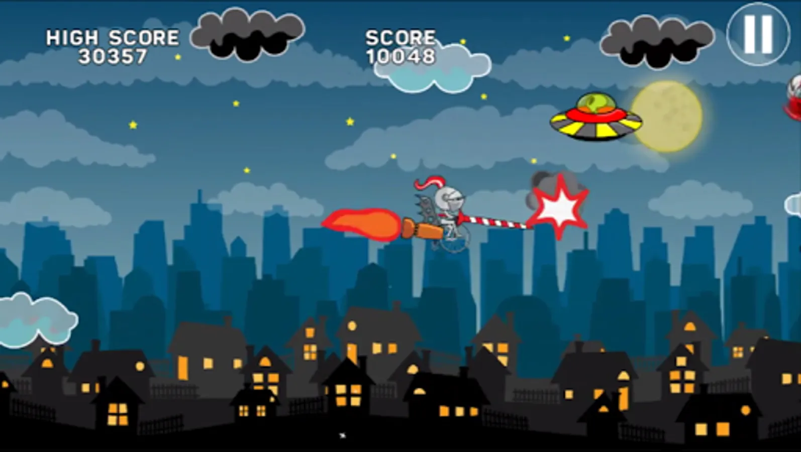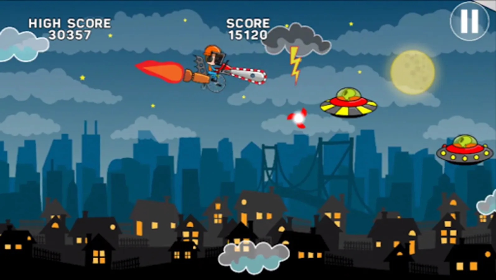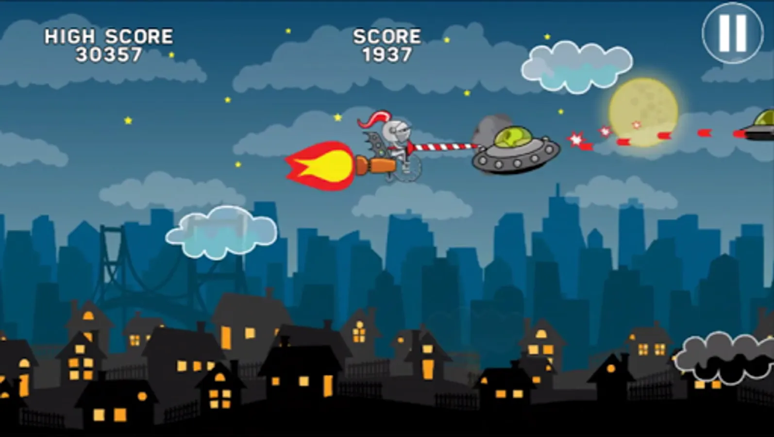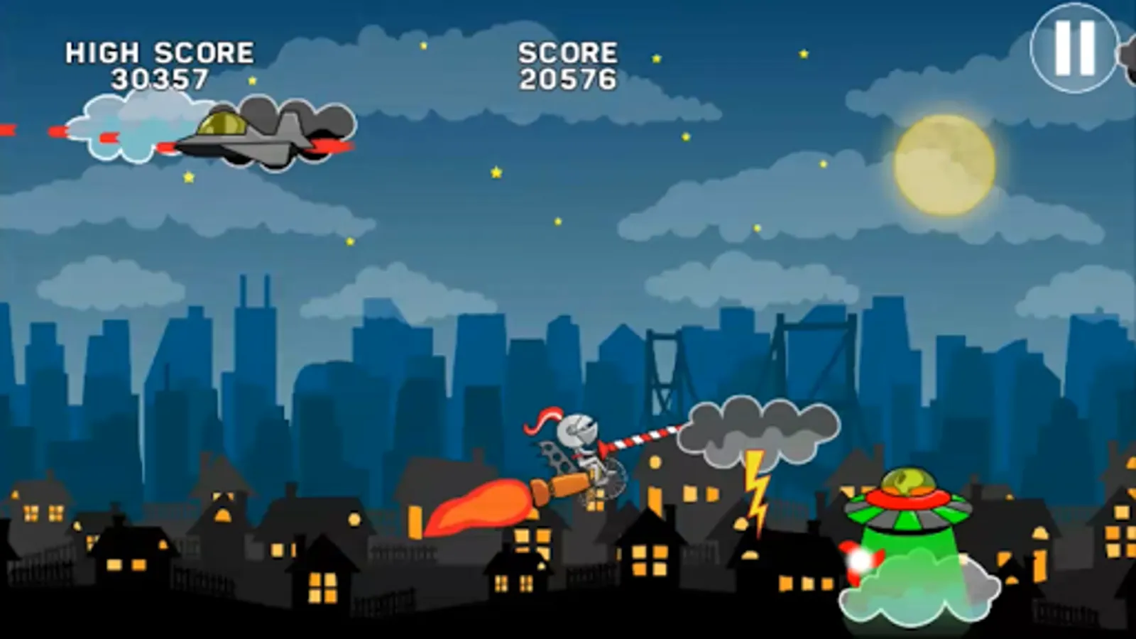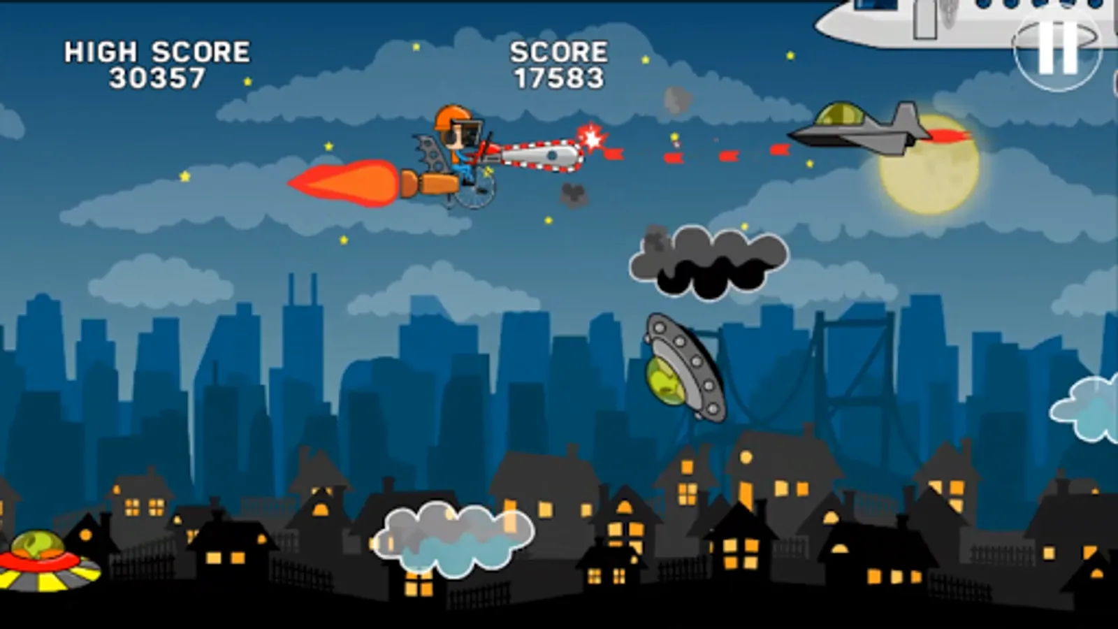 Our hero is a wacky inventor who fused together a Victorian era bicycle with a rocket engine.