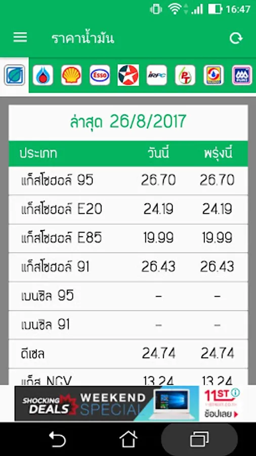 This app is for followers of the latest petrol prices, including Gasohol 95, Gasohol E20, Gasohol E85, Gasohol 91, Gasoline 95, Gasoline 91, Diesel and NGV gas are easy to use and free throughout use. How much oil is it today? Daily updates are updated, look here and notify tomorrow's price. (When price changes) load it