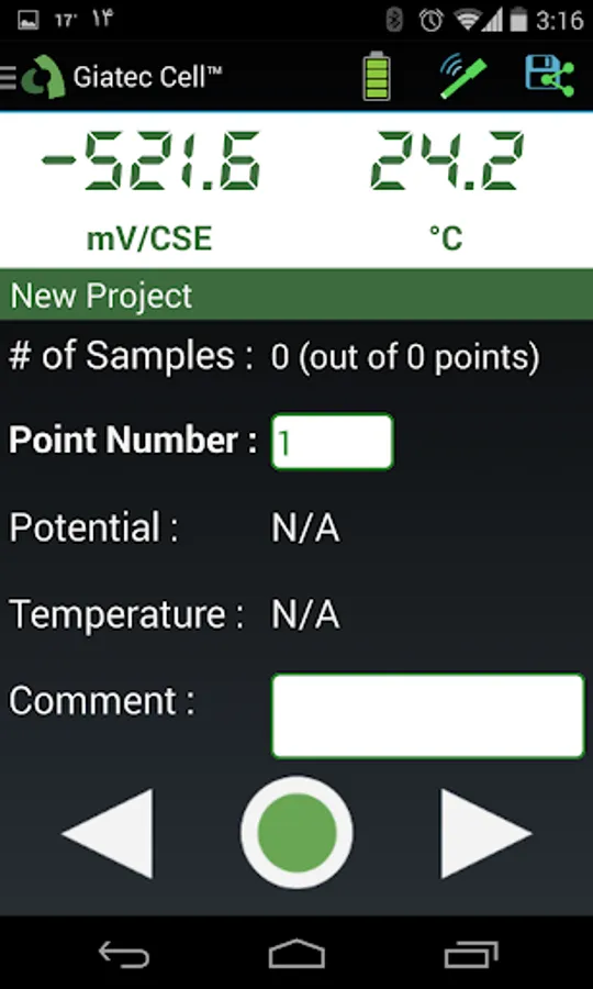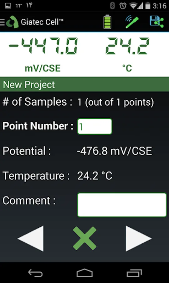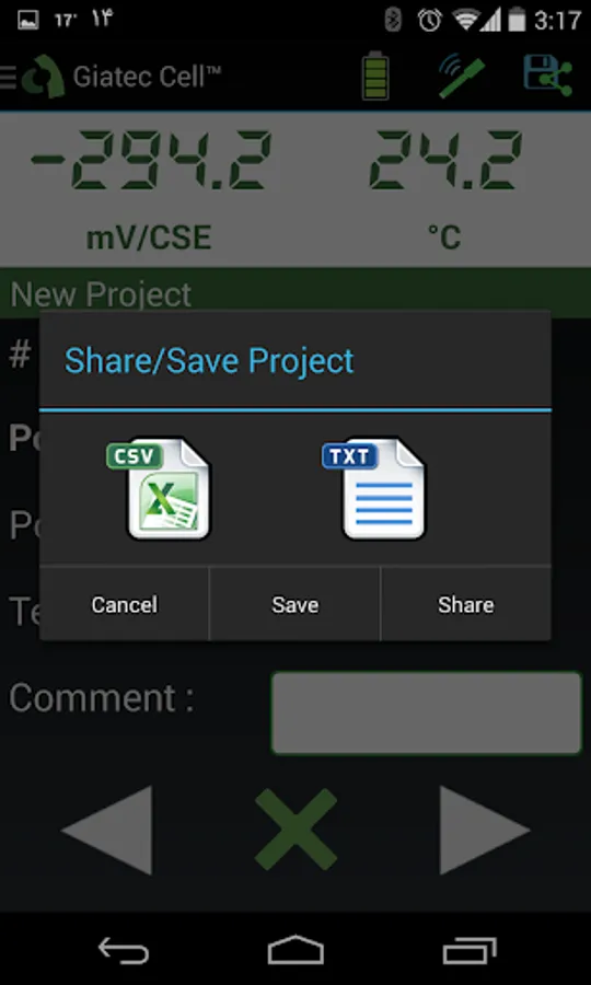 This application can be utilized to communicate with the Giatec Cell™ probe to measure the half-cell corrosion potential of reinforcement in concrete. The measured data of half-cell potential and temperature are sent using Bluetooth to the mobile application and are recorded sequentially. The results can be exported and shared in Excel and Text format for subsequent analysis.