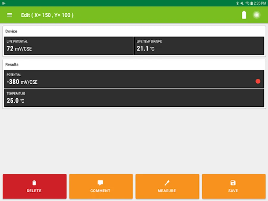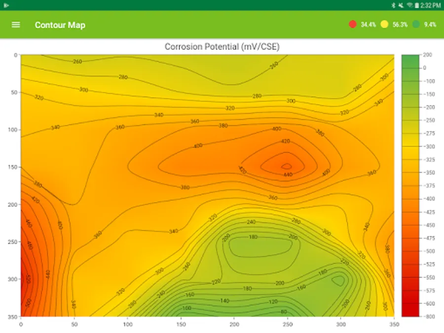 This application generates half-cell potential contour plots (i.e. corrosion maps) in real-time from the data received from a blue-tooth enabled corrosion sensor called Giatec Cell. Using this app the results can be shared easily with the engineering office. It significantly reduces the labor cost associated with the data collection and subsequent contour plot generation and reporting.