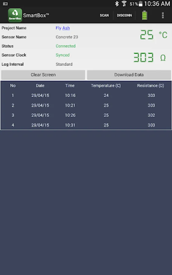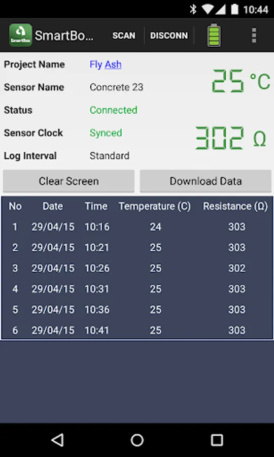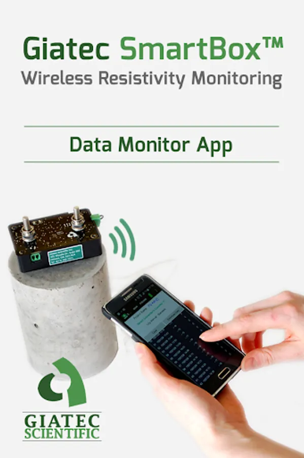 Giatec SmartBox™ is a compact wireless device for the measurement and monitoring of electrical resistance and temperature in fresh concrete. The continuous measurements are recorded on SmartBox™ and can be downloaded using the mobile application on Android smartphone/tablet.