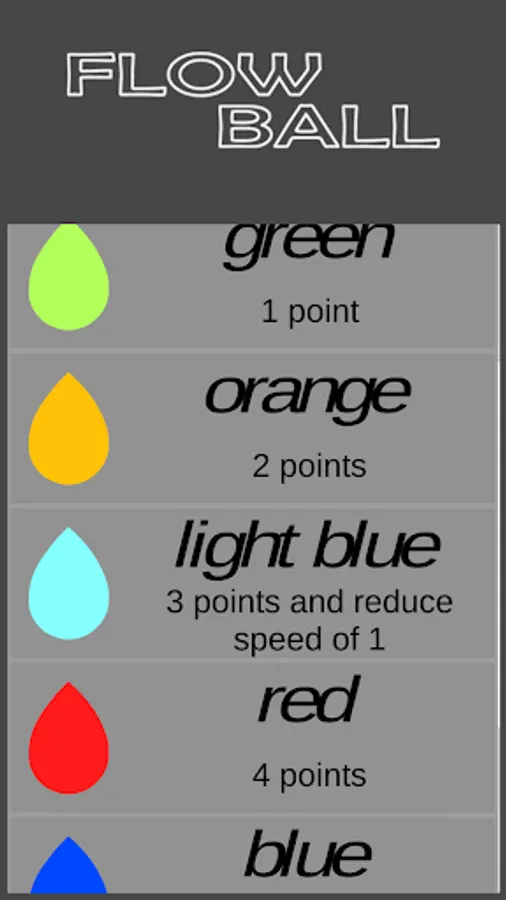 - Light Blue ---> 3 points and also decreases the rate of generation of a new row of obstacles to 1;