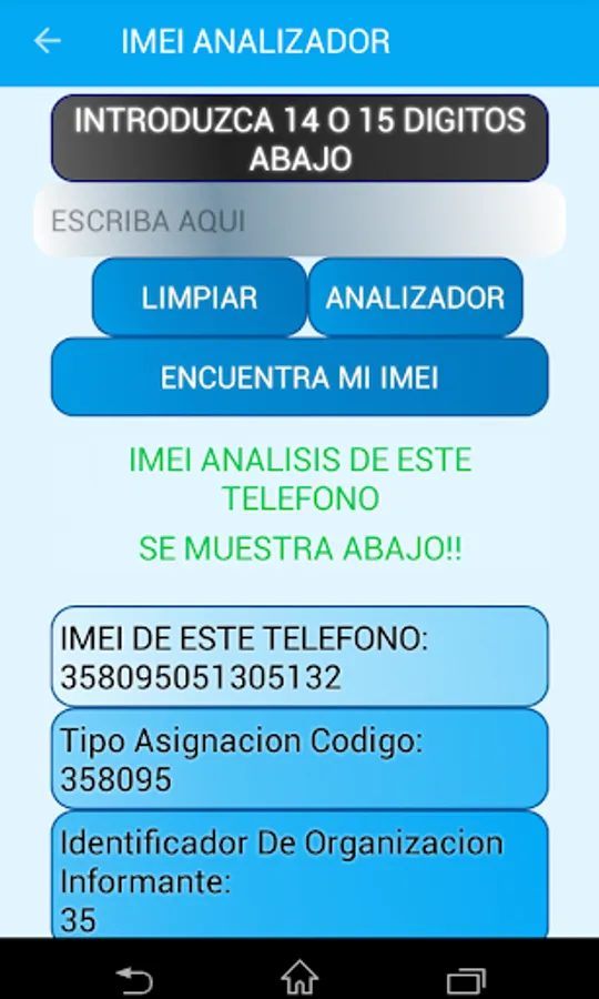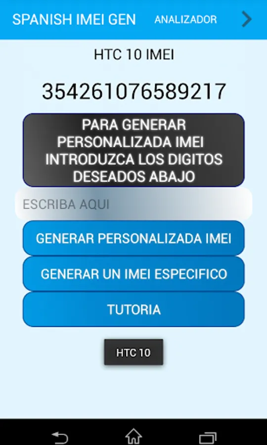 The SPANISH IMEI GEN is a simple app for generating and analyzing IMEI for mobile phones. Each IMEI has been tested and confirmed to be real. With the SPANISH IMEI GEN, there is no chance of getting a fake IMEI. There are more than a hundred phones listed and more will be added as time goes on. The app is easy to use with no complications.SPANISH IMEI GEN is brought to you by gibatekpro.