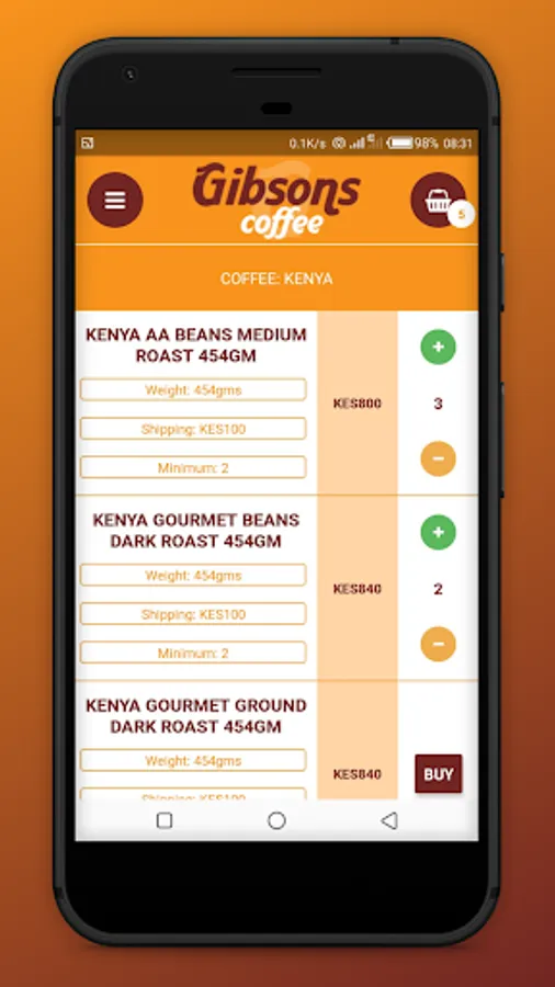 Our brands include Kenya AA, Kenya Gourmet, Household Coffee, Kenya Espresso and Gibsons Instant Coffee. All these brands are available for purchase through our application.