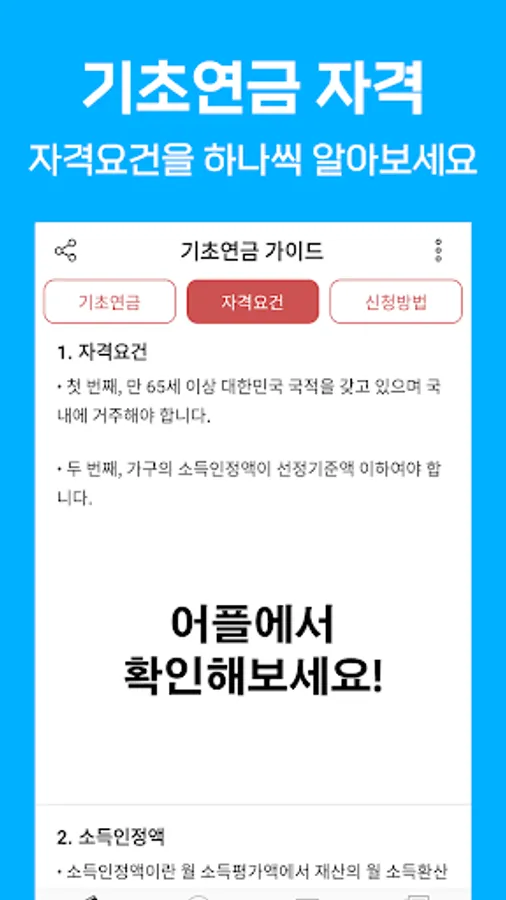 If you use the app, you can easily check the eligibility conditions to become eligible for basic pension benefits, and if you do not meet the eligibility conditions, we will provide information on the reduction standard to inform you of actual benefits.