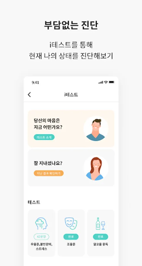 Users can easily find out what kind of problems they have through itest (self-mental health test) provided by Gidap.