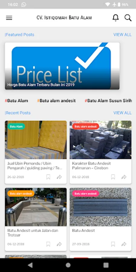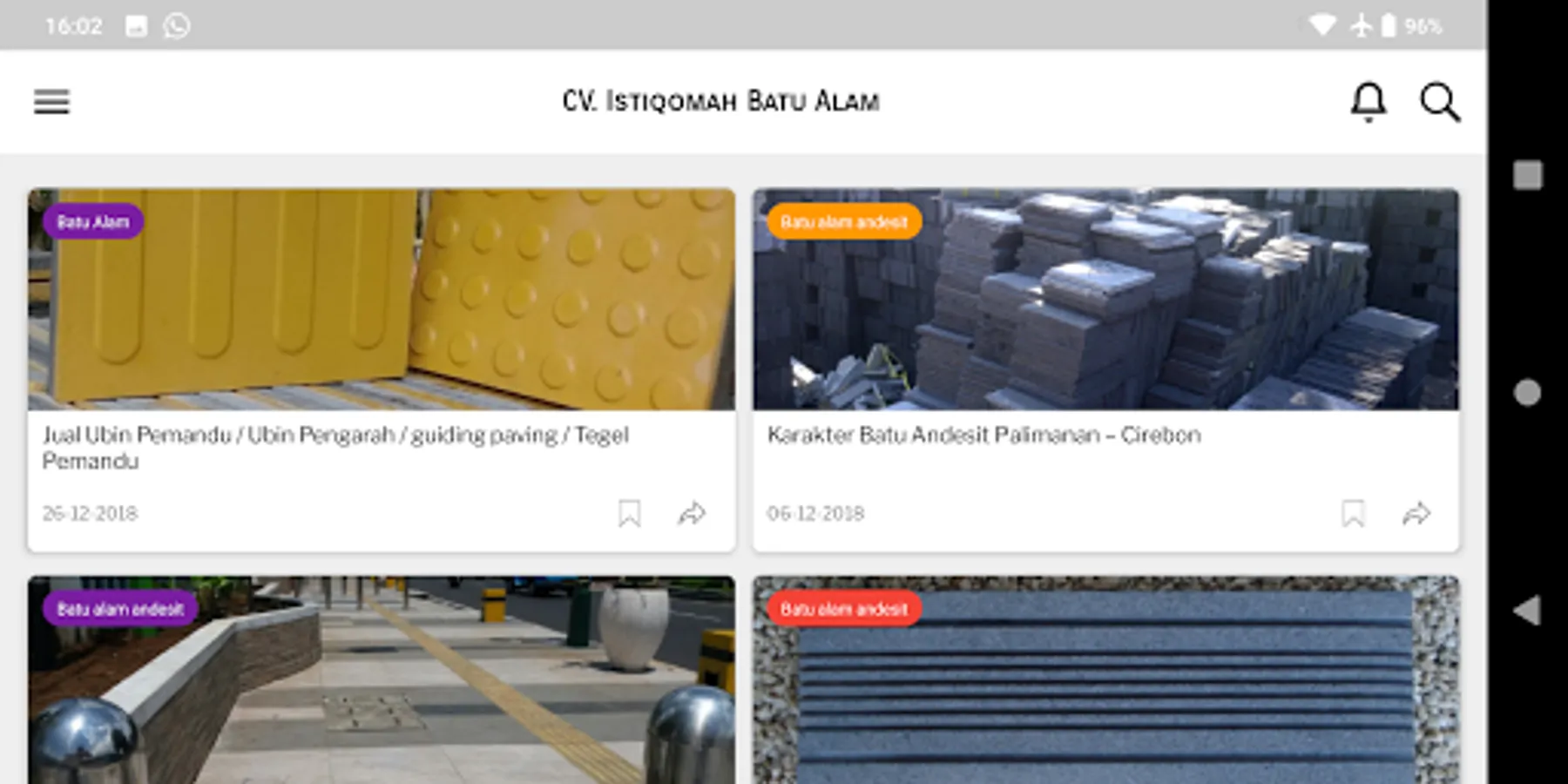 Natural Stone - CV. Istiqomah provides information on several types and sizes of natural stone