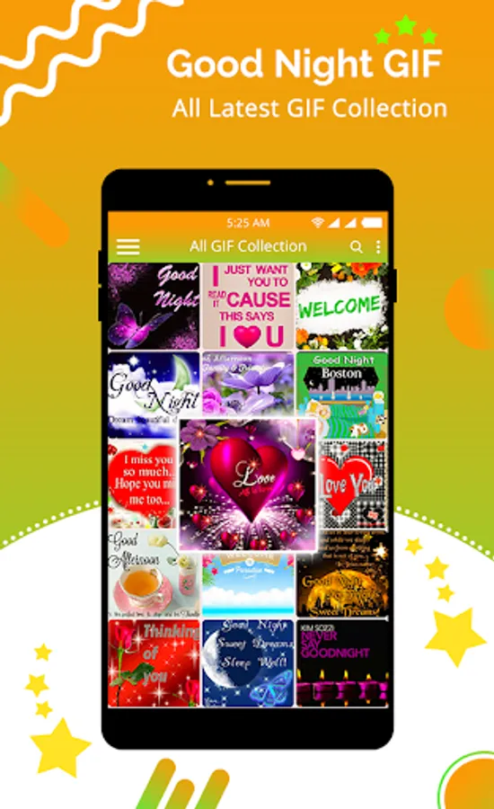 - Good Night GIF greetings cards fully supports looks very beautiful on vertical orientation of any mobile device.