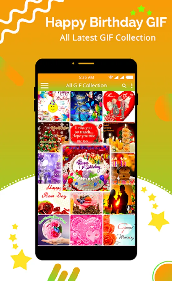 - Happy Birthday GIF greetings cards fully supports looks very beautiful on vertical orientation of any mobile device.