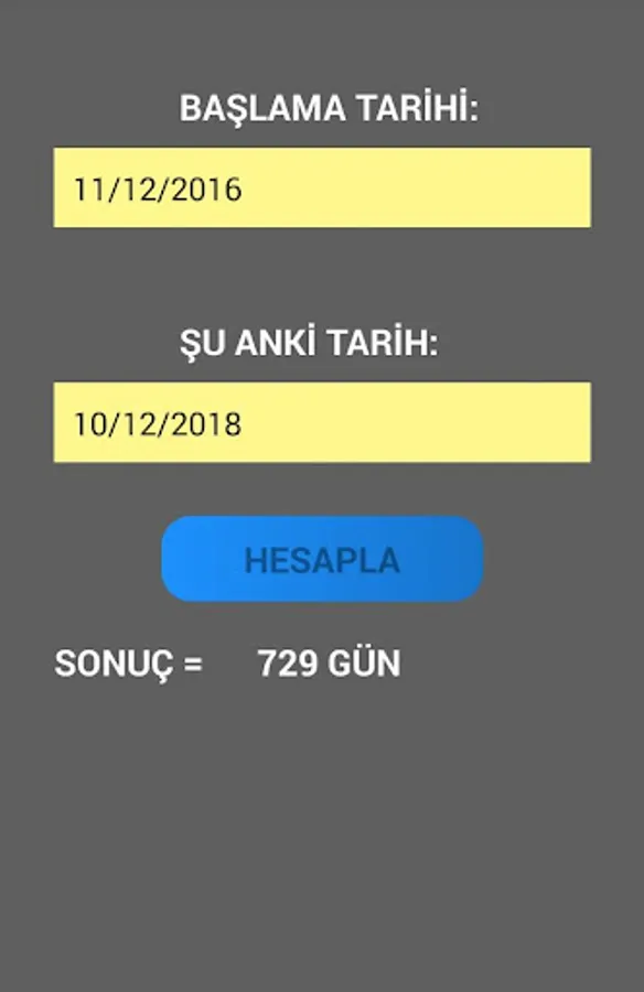 The day calculation application gives you the number of days between the two desired dates.