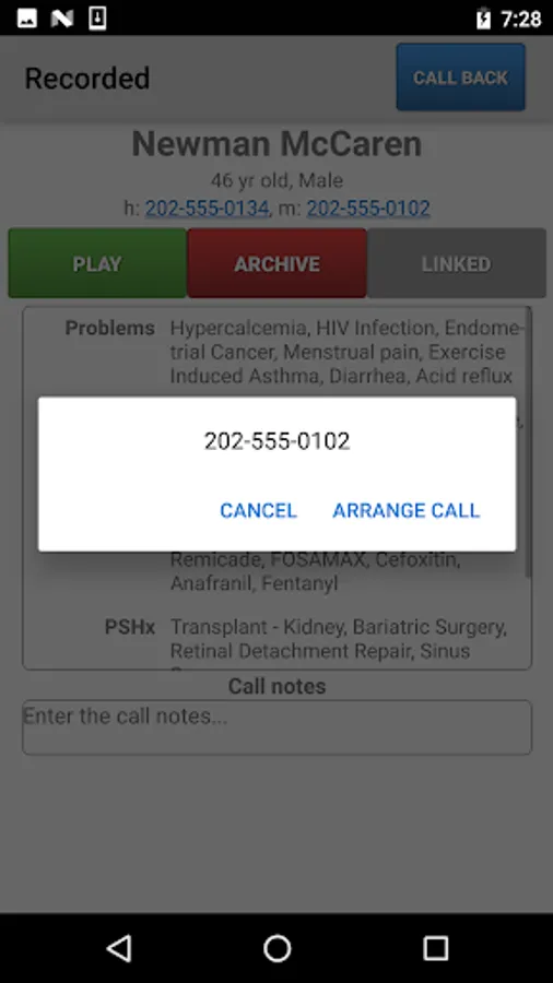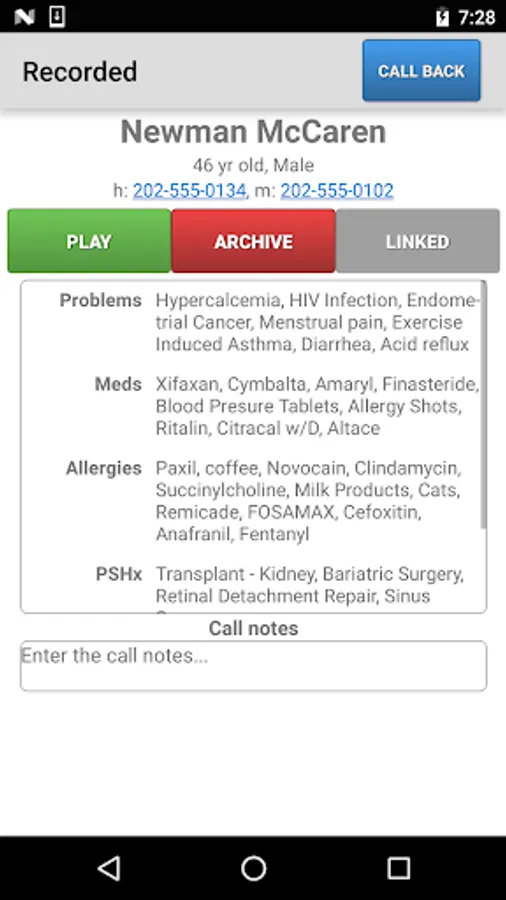 Using this app to manage your patient communications allows your practice to bill for reimbursable calls and telephone consults. All calls and data communication are secure and HIPAA compliant. Calls made via the MedXCom app are recorded and archived to mitigate your medical malpractice liability risk and for easy retrieval of call recordings.