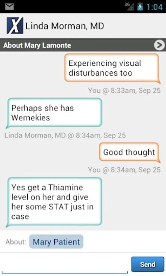 • Secure HIPAA-compliant instant messaging with any healthcare provider in your practice and MedXCom network