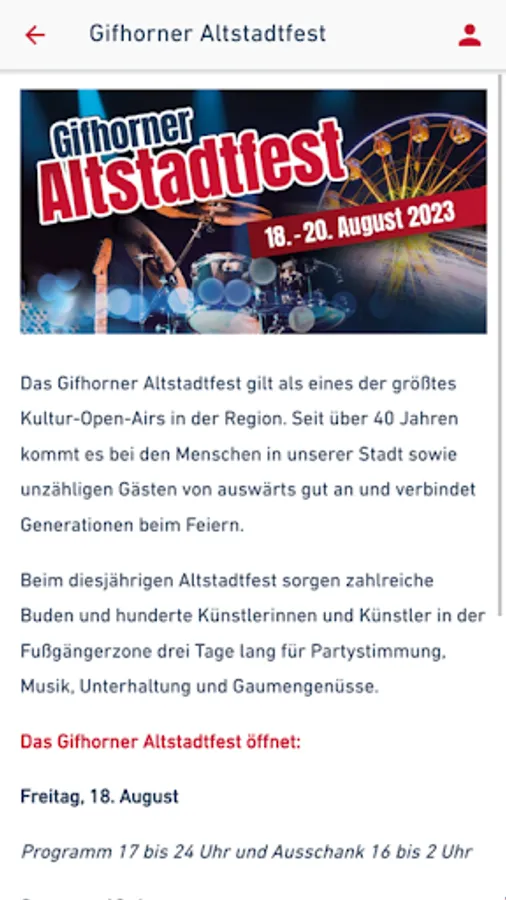 The app for the Gifhorn Old Town Festival 2023. All information, all dates, all bands.