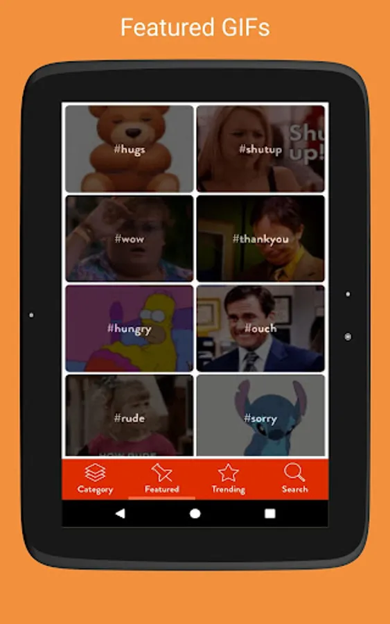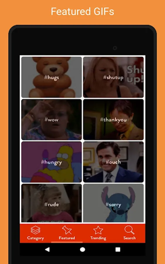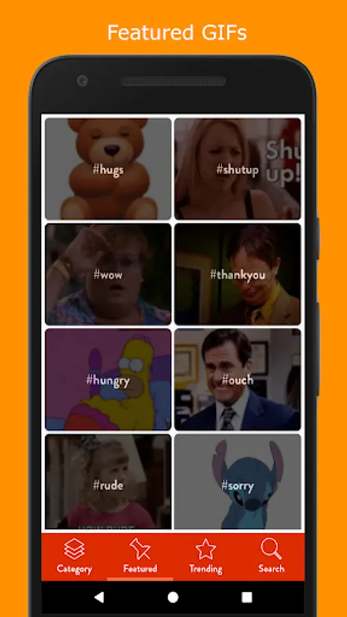 - Trending Featured GIF like #hugs, #shutup, #wow, #thankyou, #hungry, #sorry etc
