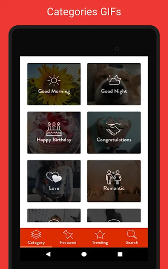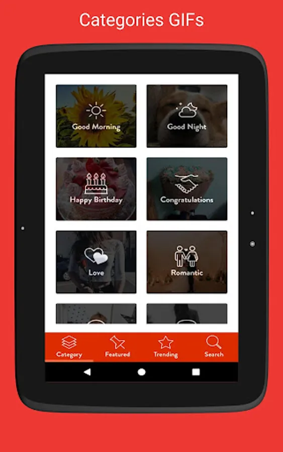 - Categories GIF like Good Morning, Good Night, Happy Birthday, Congratulation, Love, Romantic etc