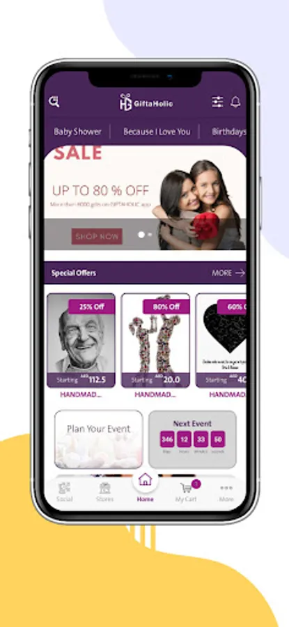 Giftaholic also allows you to plan events and invite friends so you can have a truly special and memorable occasion such as baby shower ,wedding shower and any anniversary you can think of .