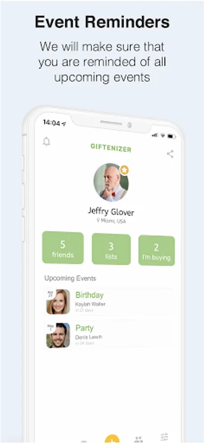 - Add your friends and family to keep them informed about your upcoming events while providing them with a list of desired gifts.