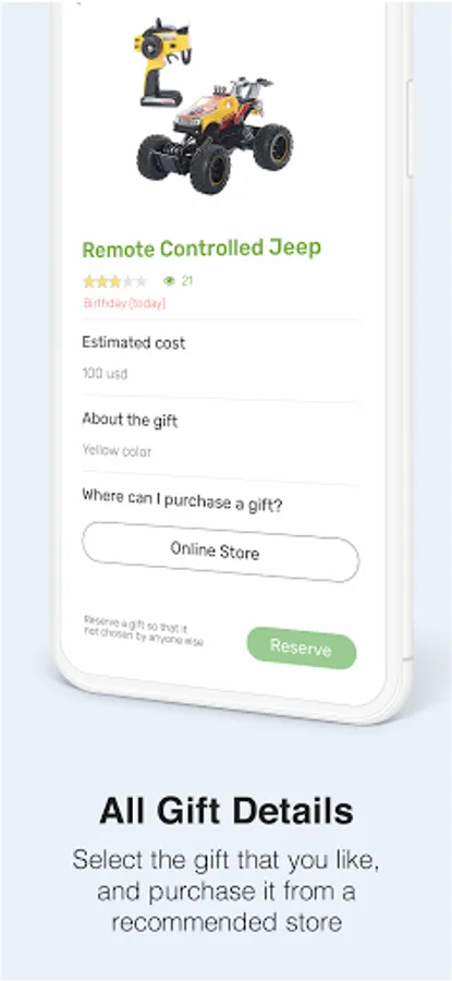 - Mark and reserve a selected gift in order to avoid purchasing the same gifts.