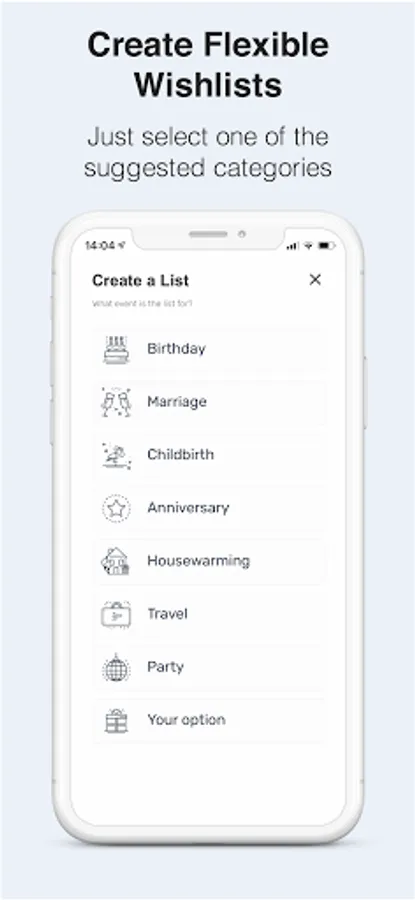 - Using the app, you can send requests to your friends and family, add gifts to your list, or create a completely new list for different upcoming events.