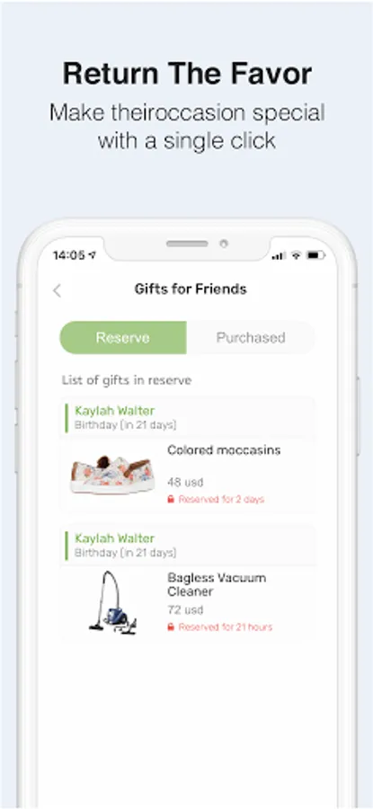 - Reserve a gift for up to 48 hours so that no one else can buy it.