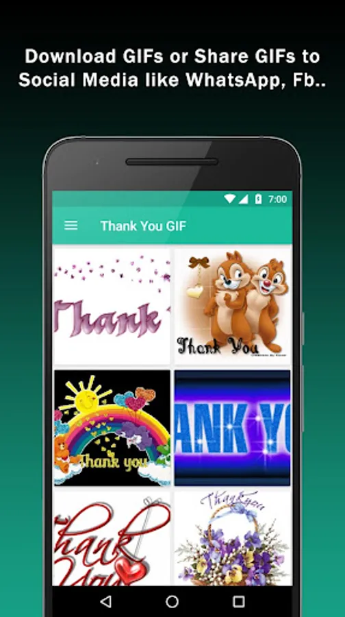Say Thank You to someone whom you are very very thankful by your heart using all new way by sending them animated Gif thank you images found on this app.
