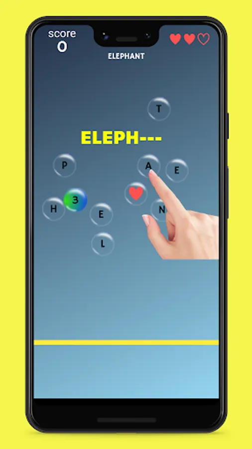 User need to pop the letter bubbles to form the target word before the bubble vanishes. The user needs to pop the Alphabets in the right order to form the target word. If the user pops the wrong bubble, the user will get negative score.