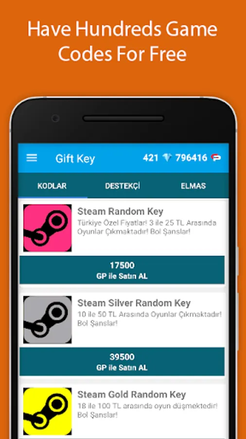 For the latest steam games, Steam Random Key and Game Codes, just play the Wheel of Fortune and complete the missions! You can get valuable goods such as Wallet Codes, RP, UC and Various Game Diamonds for free.