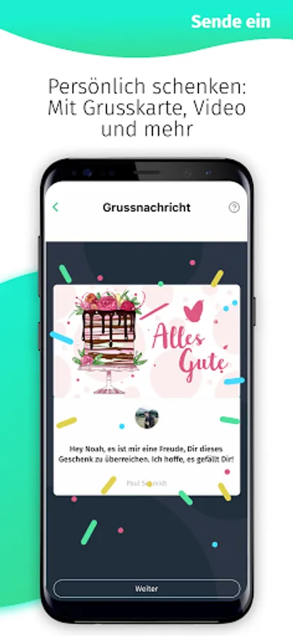 We help you to make giving easier and to individualize it. Give away quickly and easily and put a smile on the recipient's face by adding a photo or video and an individual message.