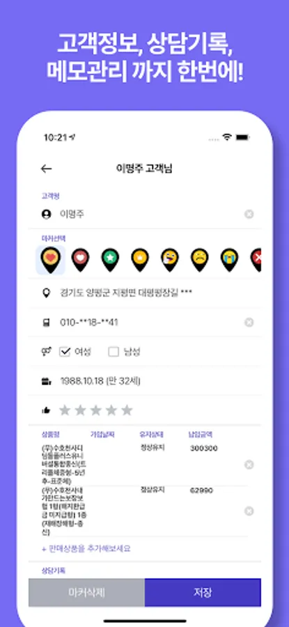 * You can manage customer basic information as well as consultation records/sales memos at once.