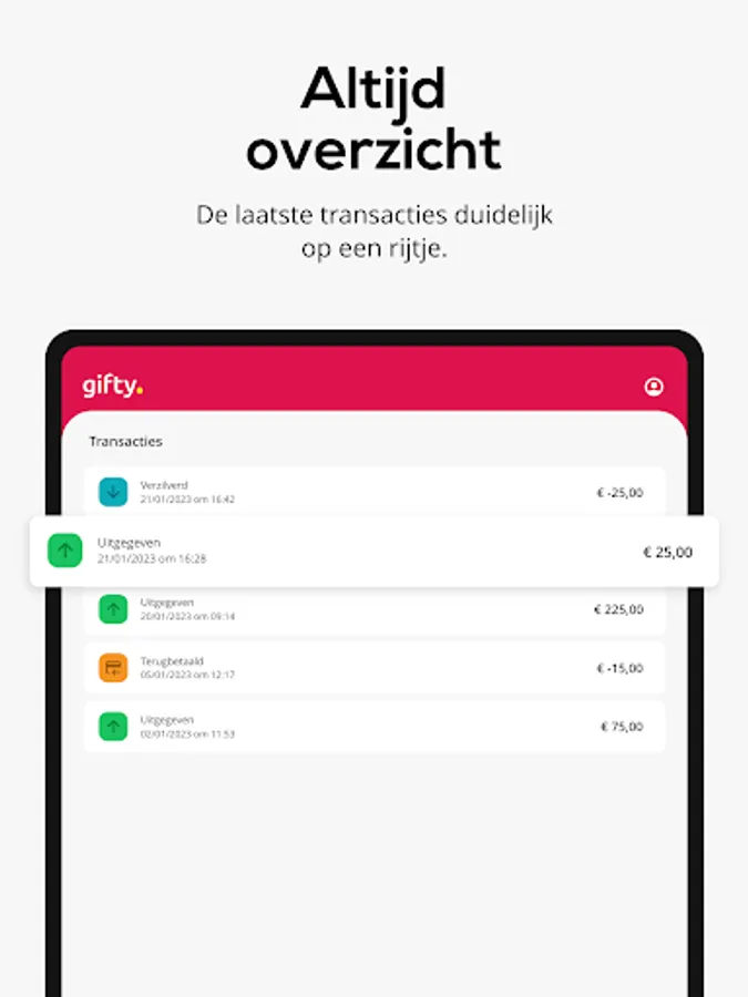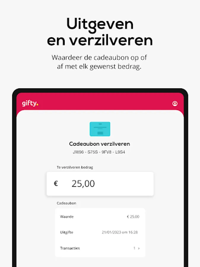 Are you affiliated with Gifty? Make it yourself easy and use Gifty app. Redeem the gift of your customers with one touch and give gift without effort. Ask? Mail to support@gifty.nl.