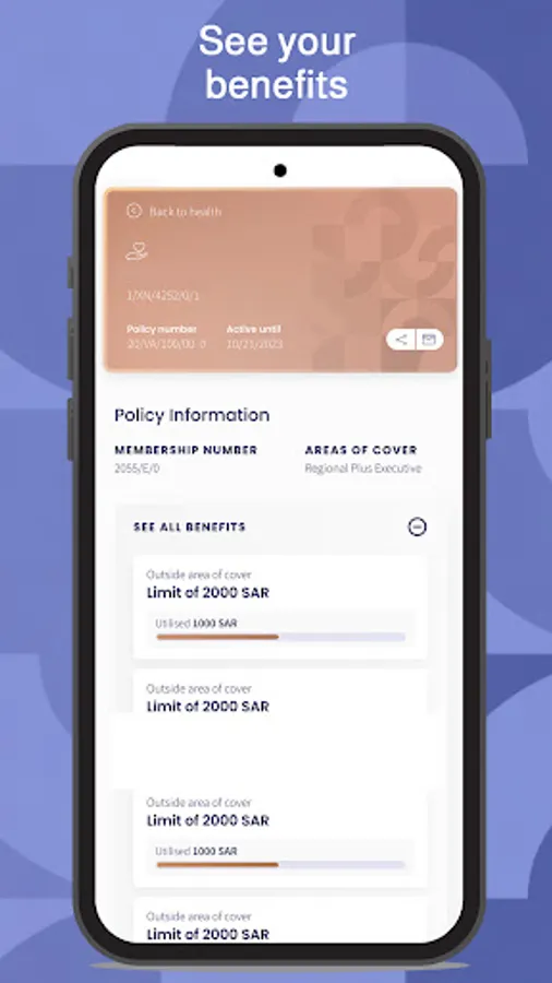 * Easily access your individual and dependents' electronic health cards, policy details, benefits, and covers.