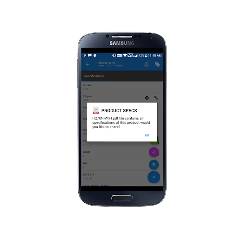 Can use this app for ready reference, compare products, share specifications page with a colleague/customers via email or social links, in pdf format.