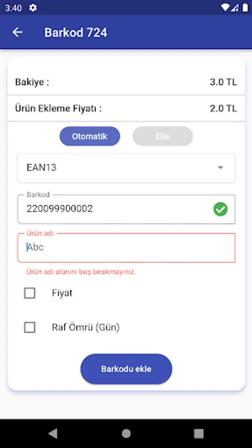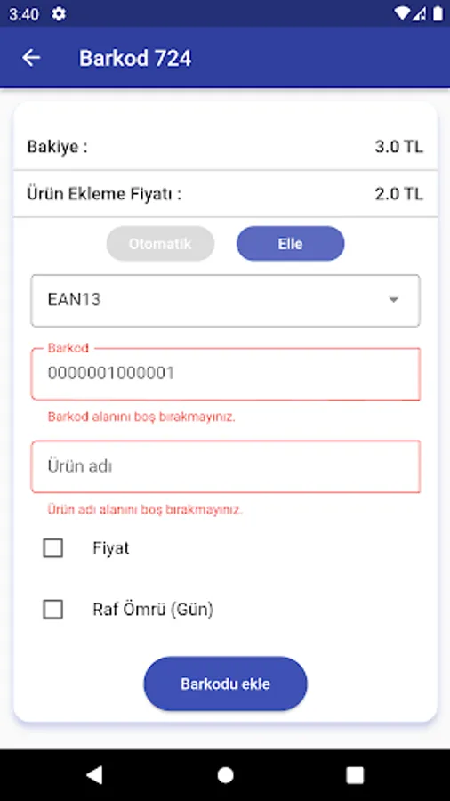 If you have registered as a member or if you are a former user, you will be able to log in to the system and buy credits / credits. Because without credit, product registration is not possible. If you are a former user and your product information is in the system, it means that you will be able to create an order for how many barcode labels you want from which product. Credit is not deducted in the ordering process. Credit is then deducted when the labels are printed and you receive them. You will be able to see the order history and your entire product list in print.
