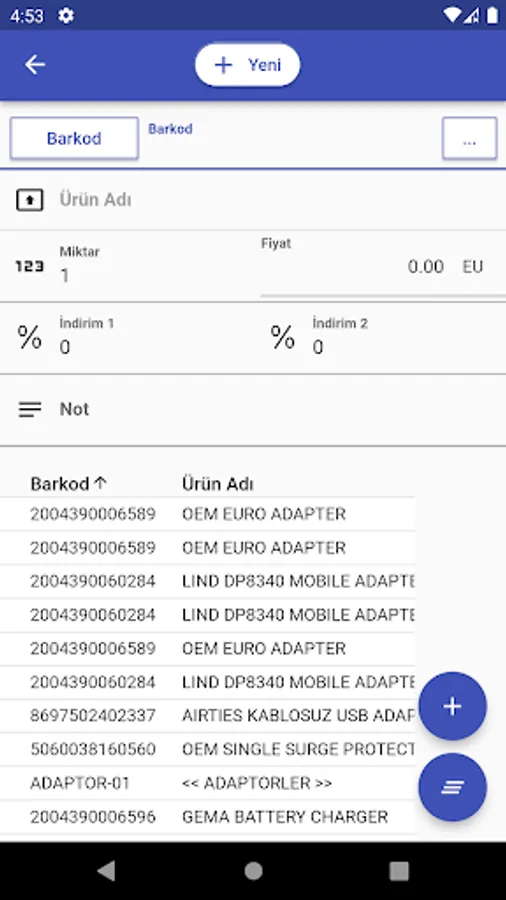 You can find your products by code, barcode or name.
