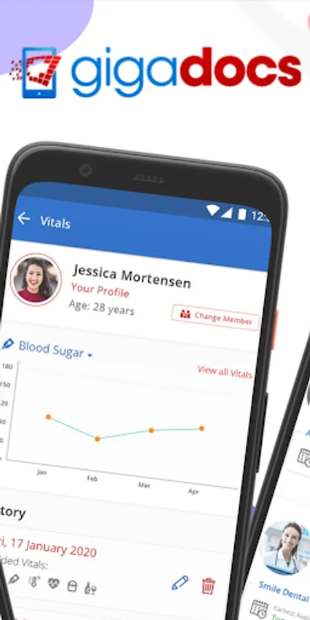 Gigadocs is a one stop solution for the entire health ecosystem. Gigadocs app helps you to maintain entire family health history. You can see all the health records of your family at one place and no need to carry lot of files and prescriptions with you for your next visit to doctor.