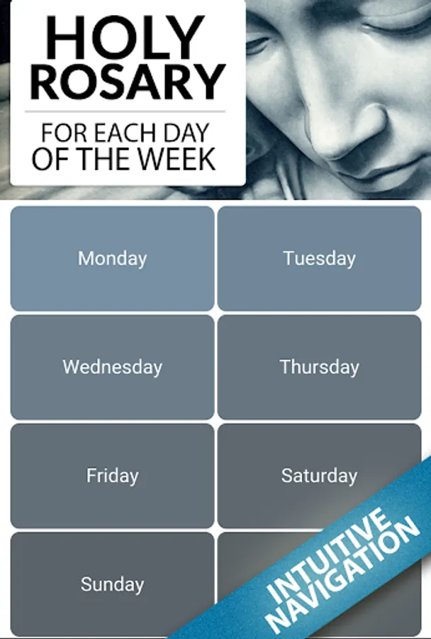 The Catholic Rosary App that saves time and provides effortless prayer during the busy week. Just tap the current day and pray the Rosary.