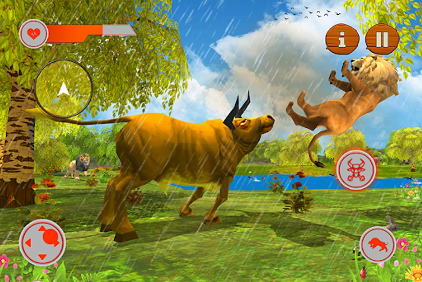 Start your bull child journey with unique game play where you play as wild bull and eat some food to maintain your health in the surviving jungle area. Fight with angry animals like wolf, fox and many more to survive in the savanna forest. Find your mate in the jungle town and take her in the home safely from jungle predators.