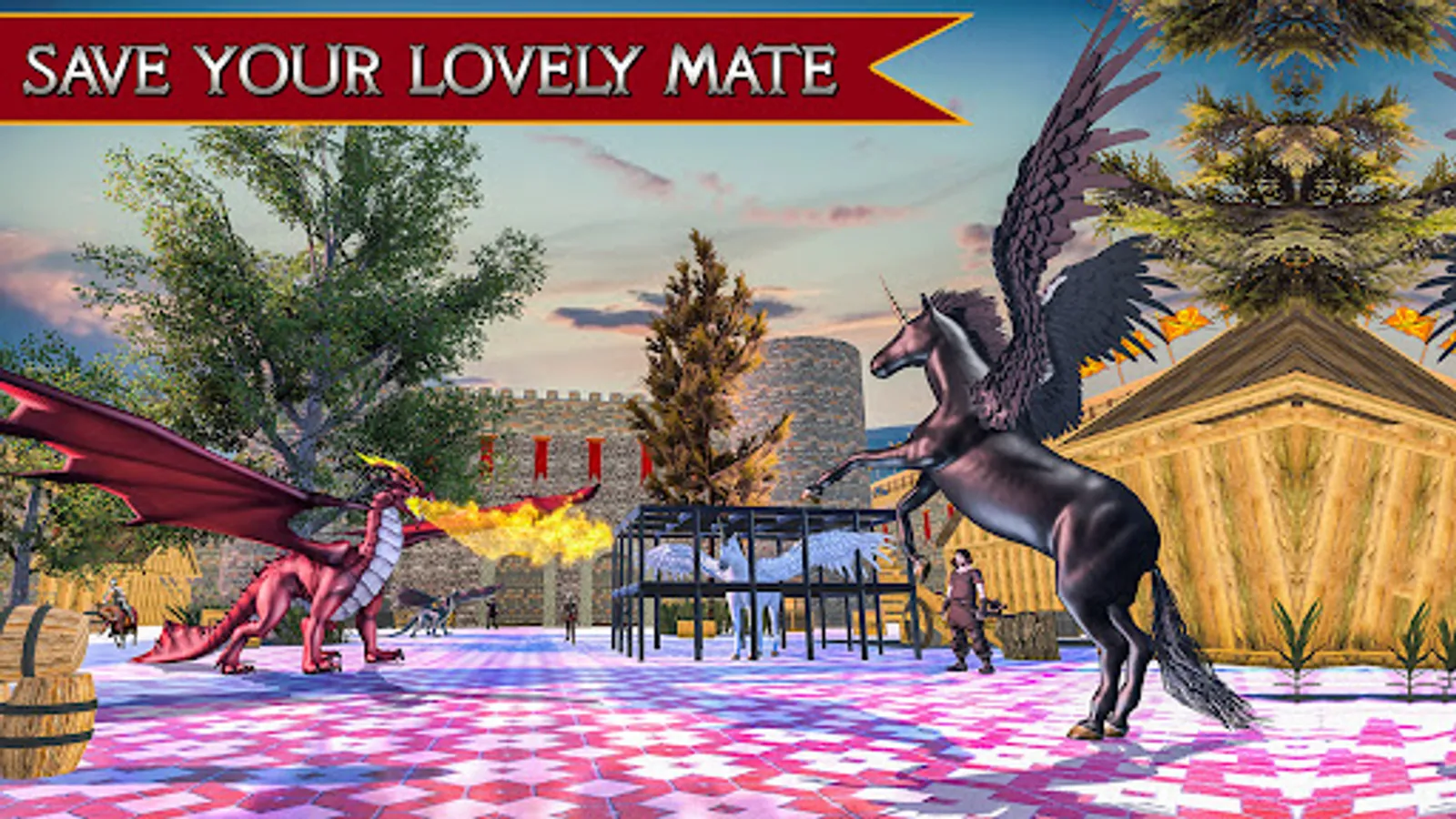 Flying and deadly dragons are waiting for you. Get ready to find your soulmate. Start vanishing attack diary from fantasy unicorn land to fight enemies. Defeat dragons as well as archers and save your love from monsters. Go home to train your unicorn pony for survival in jungle while playing pegasus family simulator flying horse simulator.