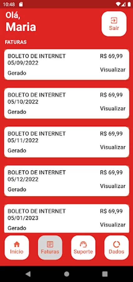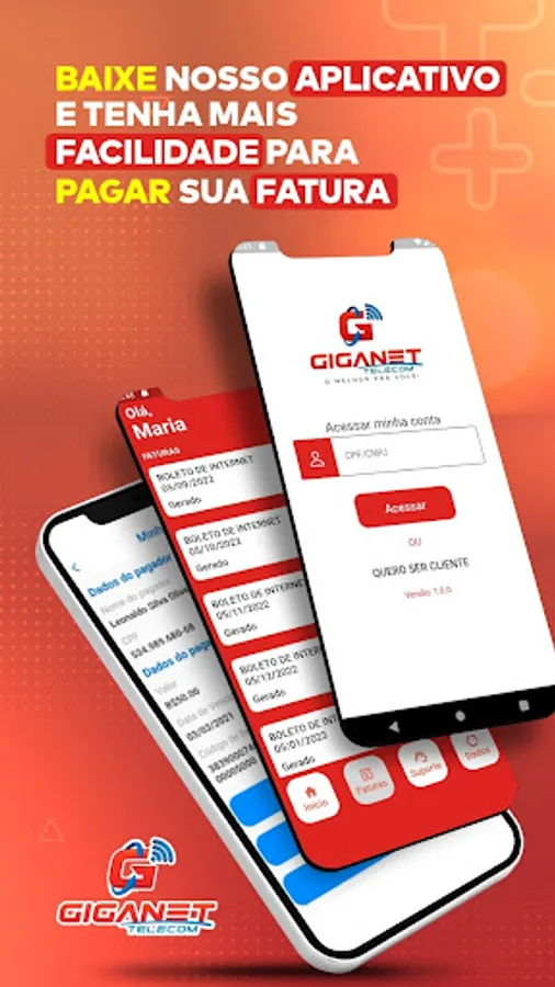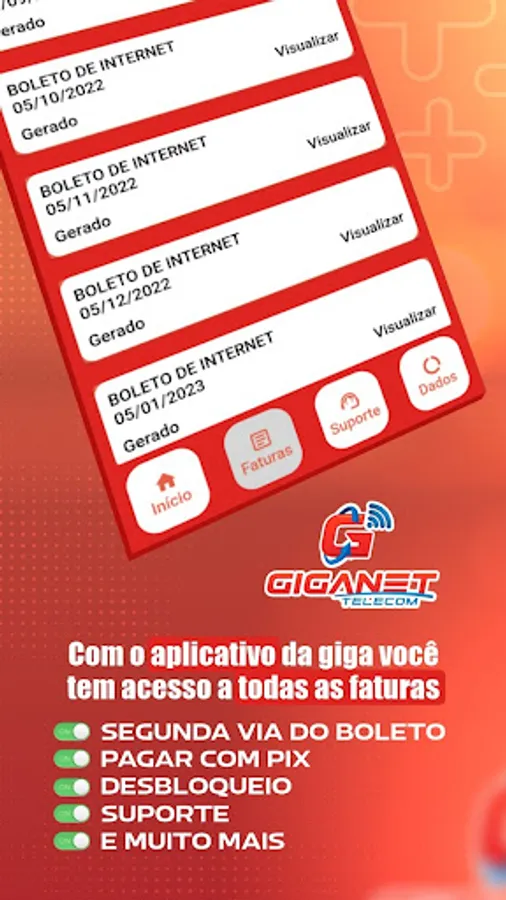 Access your invoices, check your plans, have access to your data, copy, download or share your boleto, release by trust and contact support, all via the app.