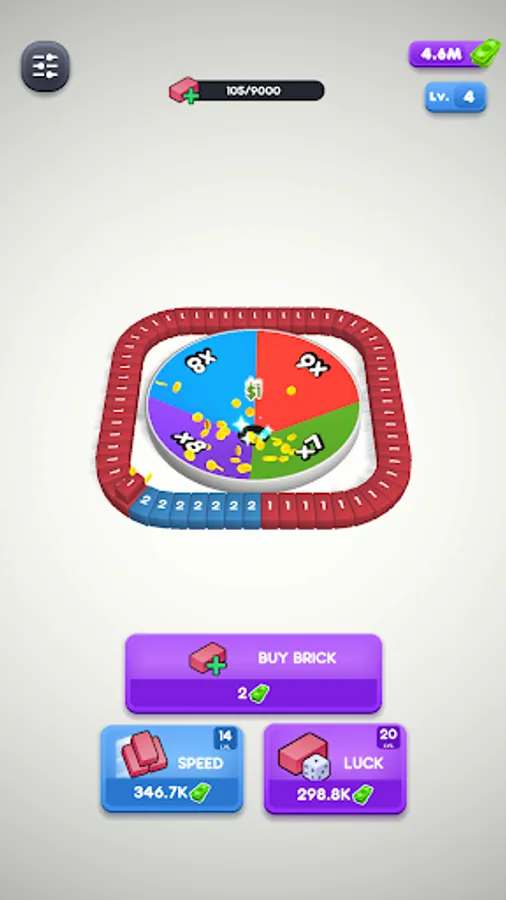 Buy bricks, upgrade your speed and luck. The rest will come automatically.