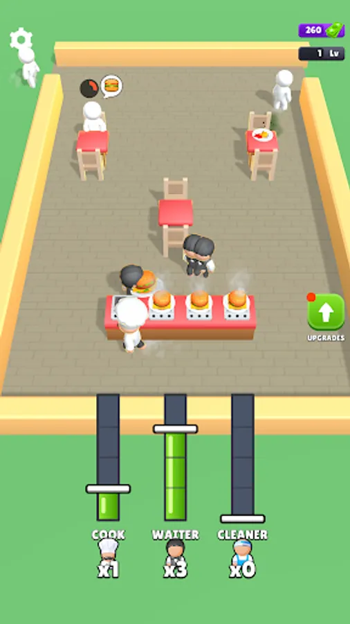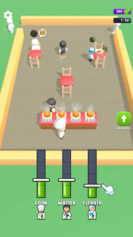 Improve your skills in employee distribution with Restaurant Management, satisfy customers, and grow your restaurant. Provide excellent service by utilizing each worker's abilities effectively and lead your restaurant to success.