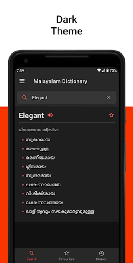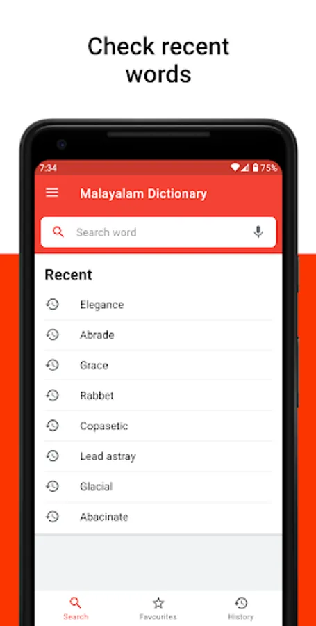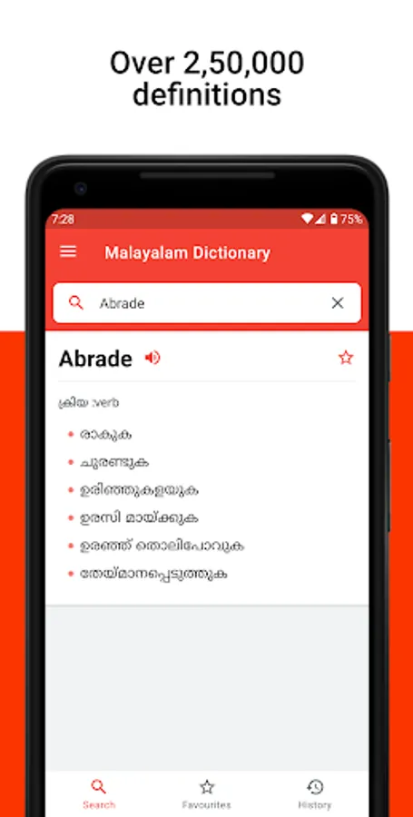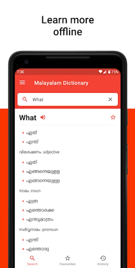 This app has lakhs of English and Malayalam words. It helps in building your vocabulary for daily words and track them for learning. Its is totally FREE, provide OFFLINE mode and No need to download offline dictionary files. It works without an internet connection. Search is quite easy due to autocomplete suggestions.