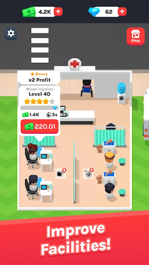 Expand your hospital network, optimize operations, and devise winning strategies to maximize your revenue! Experience the thrill of running a medical center and unlock advanced treatments and cutting-edge technologies. Your journey to becoming the ultimate hospital millionaire starts now!