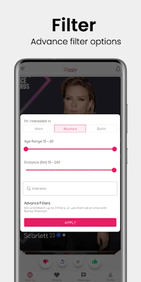 Giggly is a fresh concept where you can meet and date people near around you just like other global dating apps.