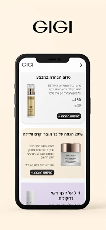 מבצעים, מוצרים, חידושים וקשר ישיר עם GIGI COSMETICS והכל באפליקציה אחת